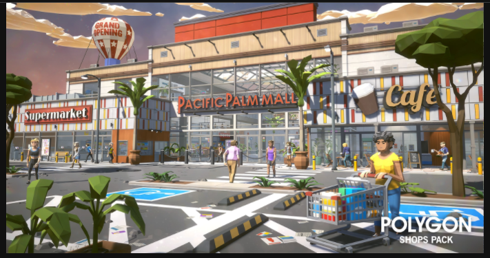 In the modern scene, the original model building map shows a huge parking lot outside the shopping mall, which is not consistent with my preset scene, because I want the prince to wake up in a meadow, and I don’t want to quickly reflect the prince through a modern world. Therefore, I modified the map here, changed the open space in front of the supermarket into a green lawn, and generated certain plants randomly through the brush. In this way, when the prince wakes up and looks around, the audience realizes that the prince has gone to another world, so there is a sense of contrast and mystery.